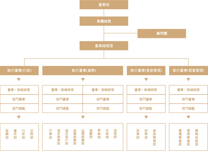 董事局>集团总裁>顾问团>董事总经理>执行董事>董事•副总经理>部门董事>部门总监>部门