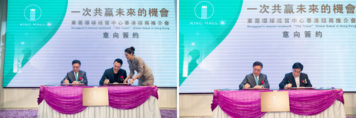 本次推介会上,东莞KINGMALL与知名品牌达成了合作意向,并签订了KING MALL意向入驻协议。这次意向合作的达成是对KING MALL的肯定,对东莞市场的认可,是东莞KING MALL“轻奢•逸致”定位的有力支撑,积极填补了东莞国际轻奢的市场。