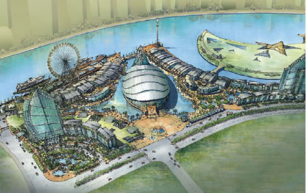 项目处于天津滨海新区,雄踞环渤海经济圈的核心位置,总建筑面积达到142,500平m2,商业部分达到5万m2,是我国目前最大的极地海洋动物馆之一。项目由大连海昌集团出资建设,外型由参与迪斯尼设计的美国RPVA公司设计,内部展示由世界排名第二的日本电通广告公司设计完成。